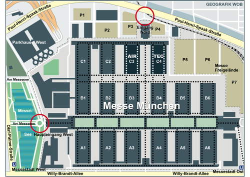 Der Plan für die Treffpunkte am Dienstag morgen. Die Messe ist in Halle C3
