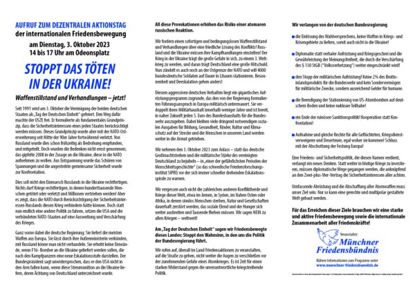 Das Münchner Friedensbündnis unterstützt die Internationale Forderung: