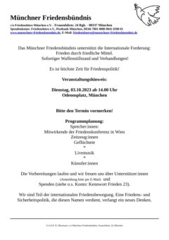 Anmeldung per e-Mail friedensbuero@muenchner-friedensbuendnis.de