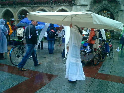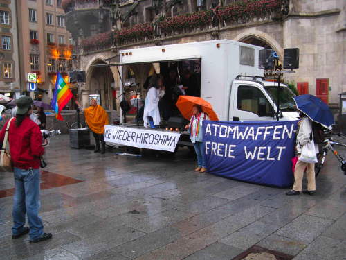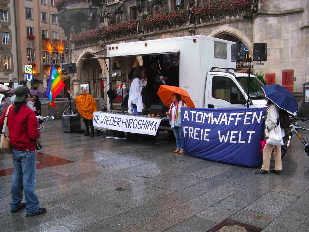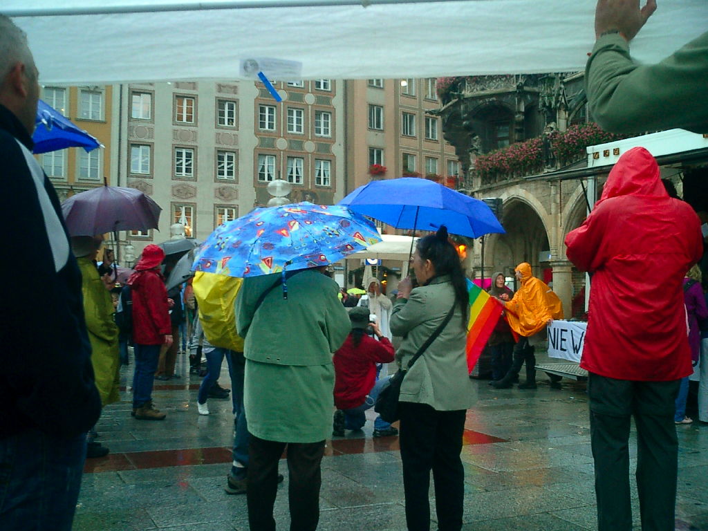 Ankündigung war hier Einige Bilder vom - leider! - verregneten Marienplatz (Klick aufs Bild für "größer") Fotos: Friedensbündnis