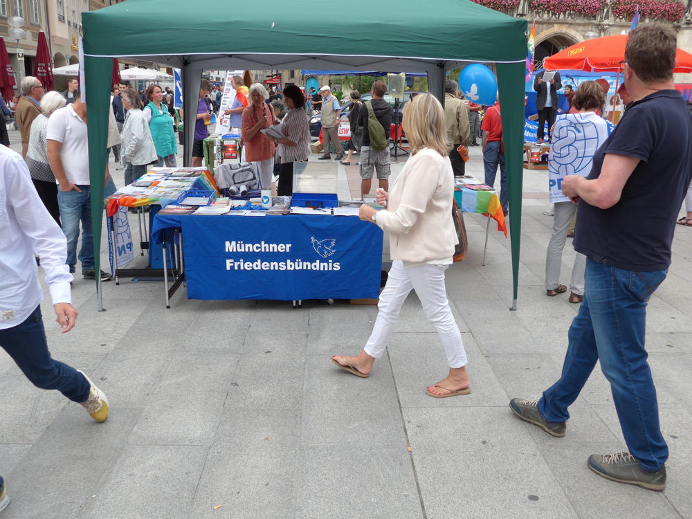 Mit einem Informationstag gegen die Modernisierung der Atomwaffen in Deutschland beging die Friedens- und Antiatombewegung in München das diesjährige Gedenken an die Opfer von Hiroshima und Nagasaki.