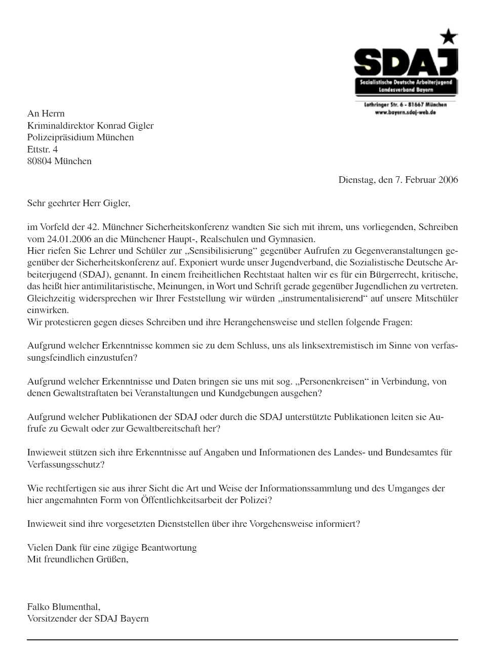 Reaktion der SDAJ an Polizei