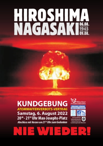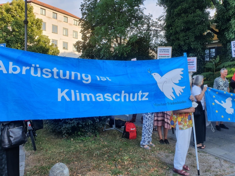 am Freitag, dem 22.07.22 standen Vertreter:innen der Müncher Friedensbewegung vor dem Amerikahaus, um die Außenministerin Annalena Baerbock, die an diesem Abend ein Townhall-Gespräch zur "Nationalen Sicherheitsstrategie" durchführte, daran zu erinnern, dass sich die Bürger:innen eine sofortige politische und diplomatische Verhandlungslösung für den Krieg in der Ukraine wünschen.