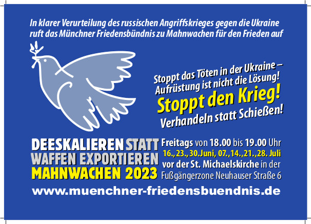 Die DFG/VK und weitere Antikriegsgruppen rufen bundesweit zu Gegen-Aktionen auf, insbesondere auch gegen das NATO-Luftwaffenmanöver "Air Defender 23".
