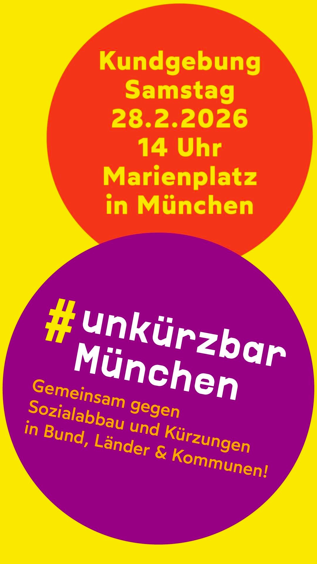 #unkürzbar - Kundgebung gegen Sparhaushalte Zeit 28. Februar 2026 - 14:00 dazu: Materialien von "SozialesRauf - Rüstung Runter!" Ort Marienplatz Veranstalter #unkürzbar München