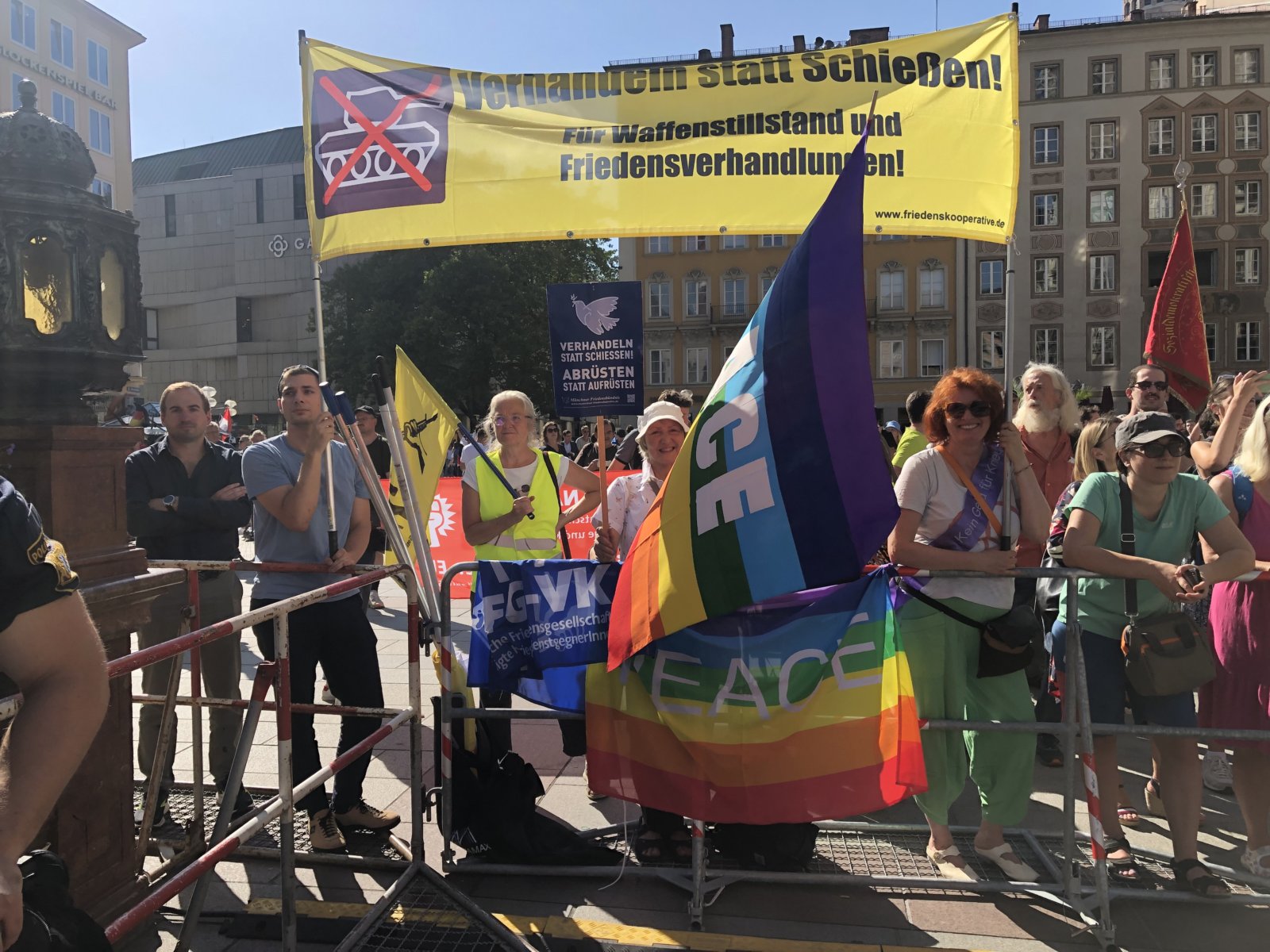 „Für Waffenstillstand und Friedensverhandlungen“--“Verhandeln statt Schießen“ --“Abrüsten statt Aufrüsten“