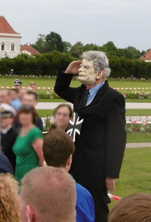 Unglaubliche Szenen spielten sich am Samstag vor Schloss Nymphenburg ab: Zwei Feldjäger stürzten sich unversehens mit voller Wucht auf einen Mann im schwarzen Anzug, der mit täuschend ähnlich wirkender Gauck-Maske vor dem Gesicht der angetretenen Truppe zugerufen hatte: „Habt acht!“ Keine drei Sekunden später rissen sie ihn von seinem mitgebrachten Schemel brutal zu Boden, sodass seine Brille zerbrach. Sie knieten sich auf ihn, rissen mit ihren rauen Quarzhandschuhen bewehrt seinen Kopf herum und fesselten ihn auf der Wiese liegend, um ihn dann ruppig abzuführen und abseits der Polizei zu übergeben.