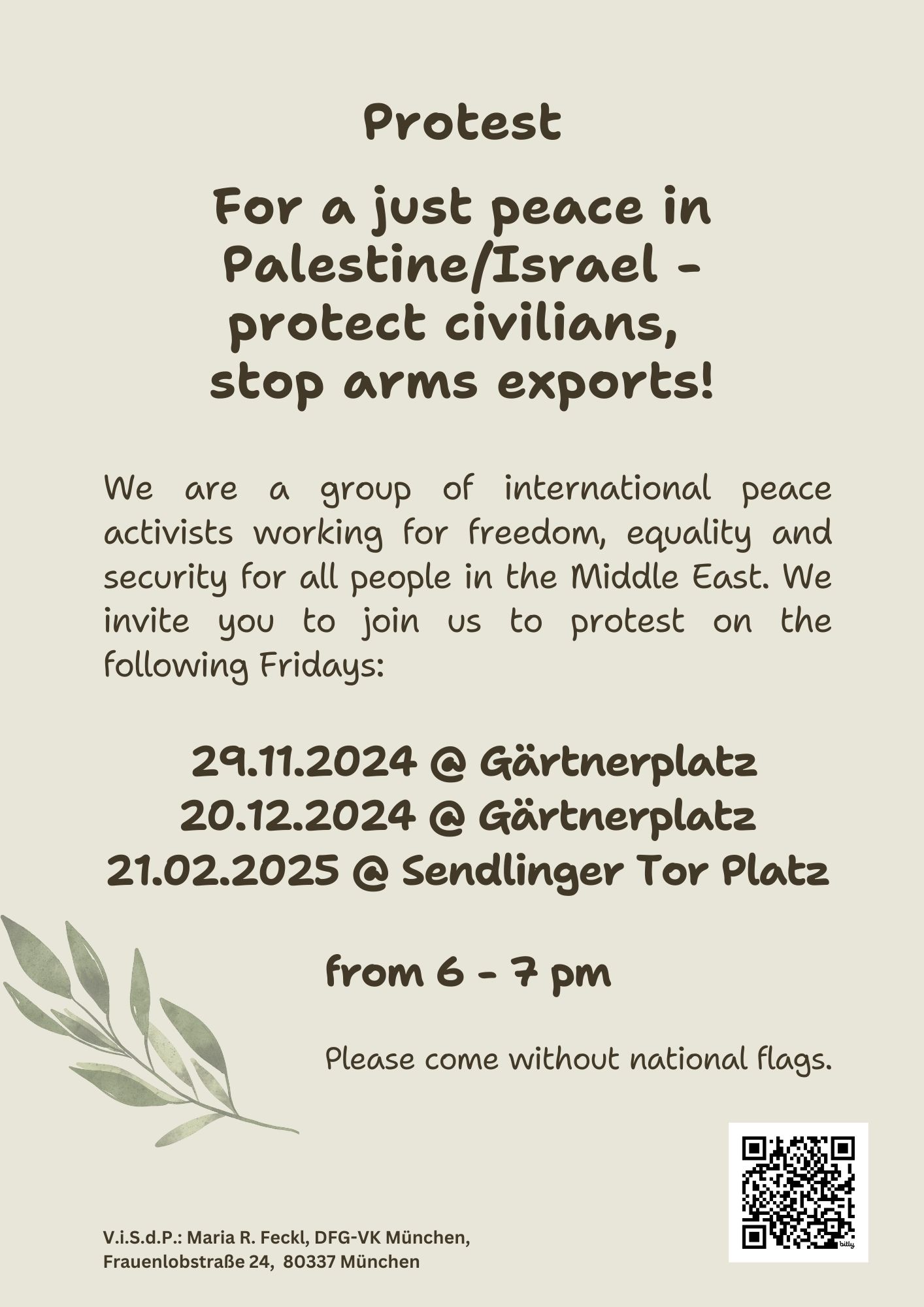 20.12. 18:00-19:00 Kundgebung für einen gerechten Frieden in Palästina und Israel, Gärtnerplatz