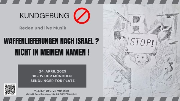 im gesamten Bundesgebiet ruft auch in diesem Jahr die Friedensbewegung wieder zur Beteiligung an Ostermärschen, Kundgebungen gegen den Krieg und vielfältigen anderen Friedensaktionen auf. So auch das Münchner Friedensbündnis am Karsamstag, 19. April 2025, unterstützt von einem breiten Trägerkreis unter dem Motto: